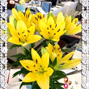 🍒Y銀行窓口カウンターのおもてなし💐 ツボミだったユリは満開に💛 今回も黄色でした🤗