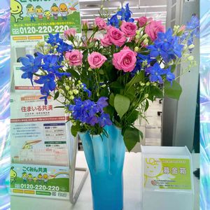 🍒Y銀行窓口の今週のおもてなし花💐 青じゃなく紫と言うよりはピンクのリンドウ( ˙◊˙ )ほー💞