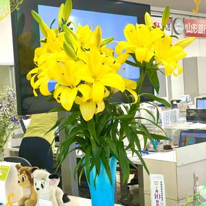 🍒Y銀行窓口の今週のおもてなし花💐 来週もこのスカシユリでイイんでないかい……?( ˙-˙ )