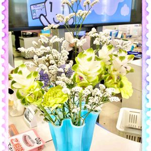 🍒Y銀行窓口の今週のおもてなし花💐 新たな「おもてなし花」も飾られておりました•*¨*•.¸¸が…黄色の塊☀️のスカシユリを前にしたら⤵️目立てないみたい😓