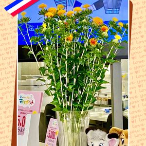 🍒Y銀行窓口の今週のおもてなし花💐 黄色💛模様ナシ💨ビタミンカラー✨ 頑張れσ(・ε・`●)ワタシ