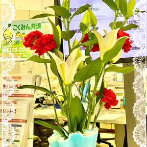 🍒Y銀行窓口の今週のおもてなし花💐 紅白゚+。:.゚おぉ(*゚O゚ *)ぉぉ゚.:。+゚🇯🇵