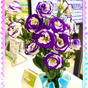 🍒Y銀行窓口の今週のおもてなし花💐 トルコキキョウでございます💜 賑やか•*¨*•.¸¸♬︎♡