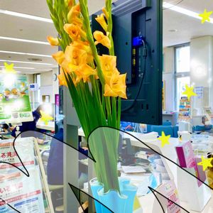 🍒Y銀行窓口の今週のおもてなし花💐 うっすらと💄つけたグラジオラス😘💛