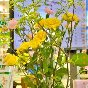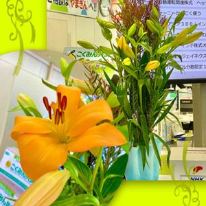 🍒Y銀行窓口の今週のおもてなし花💐 月曜日はツボミ🤣😆🤣 黄色のスカシユリだと思います🙋🏻♀️