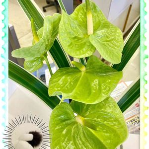 🍒Y銀行窓口のおもてなし花💐 アンスリウムてとどうたんの枝? シャボン玉みたい( * ॑꒳ ॑*)っ⌒⇛ 。○