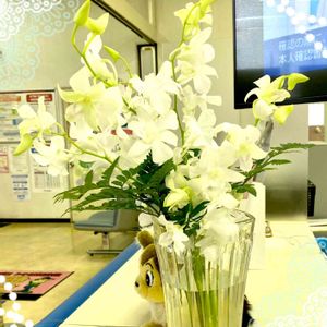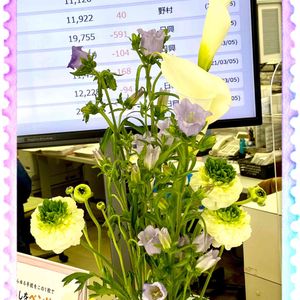 Y銀行窓口🍒今週のおもてなし花💐 ツボミで飾られた月曜日💨 花開き✨やっと花色判明の木曜日🤩 まだツボミが残っているが……明日で終わりの運命😵セツナイ。。。