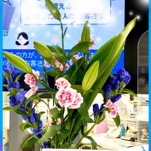 🍒Y銀行窓口の今週のおもてなし花💐 ササリンドウなら咲くけど~エゾリンドウ系だよね(⚭-⚭ )ジー 待っても咲かない切り花のエゾリンドウ🙄
