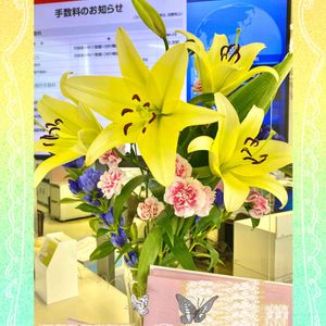 🍒Y銀行窓口の今週のおもてなし花💐 黄色いグロリオサ💛