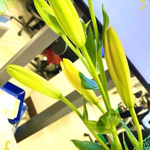 🍒Y銀行窓口の今週のおもてなし花💐 さてσ( ̄^ ̄)? この百合は何色が咲くんだろう(*'∇'*)ワクワク