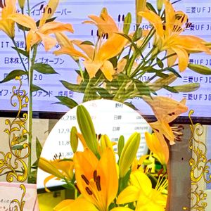 🍒Y銀行窓口の今週のおもてなし花💐 スカシユリσ(-ω-*) オレンジかなぁ…オレンジがかった黄色かなぁ(-_-)ウーム…