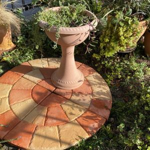 サークルストーンを作り直してみました! と言っても、ホームセンターで売っているモノを4つ組み合わせただけですが…😅 もともとフェンス側にかなり傾いてて鉢植えを置いても斜めになっちゃうし、水も土も溜まっちゃって、なんか嫌だなぁっていつも思ってました。 たまたまホームセンターで見てピンときて、衝動買い! 砂で調整して、ピッタリハマって大感激😆 長年の憂いがなくなった感じです🙌
