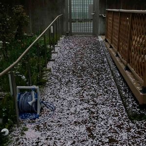 職場の庭の通路が桜の花弁で花道を作ってくれました🌸
