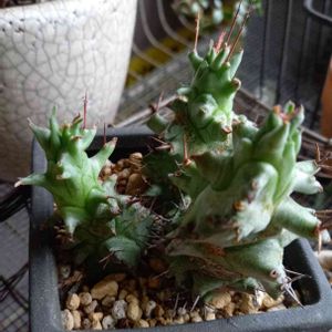 ユーフォルビア ホリダモンストと紅彩閣綴化 棘も黒くお休み中だけど今年は良く成長しました。😊