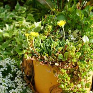 春のバケツ オダマキに変わってダリアがちょいと顔を出す🙌 ユーフォルビア・ミルシニテスは思うがままにうねうね~。 隙間に多肉をちぎっては挿しちぎっては挿し~♪ 春を楽しみながら次の季節へ少しずつ模様替えじゃ