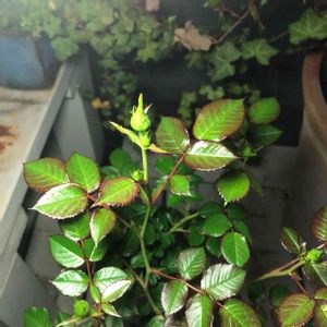 蕾シリーズ その6 ミニ薔薇にも蕾が出てきましたよ。 葉っぱも綺麗です。
