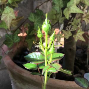 我が家のミニ薔薇兄弟🌹 あと写っていませんが、グリーンアイスがあります。 どれもまだ蕾なので、見分けはつきませんけどね😊 ワクワクです😆