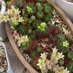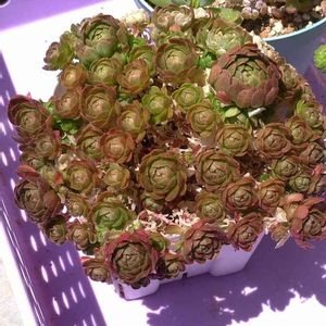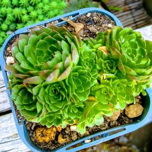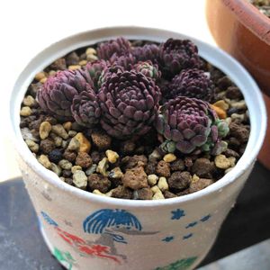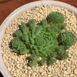ロスラリア「プラティフィラ」。 センペルビウムの仲間だそう。 昨年の秋ぐらいに購入して、その時から葉っぱがぺらぺらでぱっかーんと開いていて。冬の寒さで下葉が枯れ、このまま無くなってしまうのかと思っていました。 春になったら子株がついてきたので、やる気出したのか?と思い、メネデールやらリキダスやらをあげたら、いつの間にかこんなに可愛くなってました🎵 調べたら、こんもりと群生するらしいので、プランターから独立させようと思いまーす✨