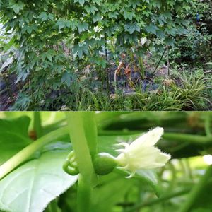 夕方のパトロール ①オクラの葉っぱを引きずり込もうとする 沖縄スズメウリのツル ②ミニトマトの枝を引き寄せようとする 沖縄スズメウリのツル まるで捕食者みたい😱 ③ミニバラ の 姫乙女1.5mm ぐらいの小さな花を咲かせています ④今年も実をたくさんつけている ユズ ⑤見逃していた 今日のホテイ草💦