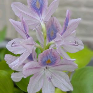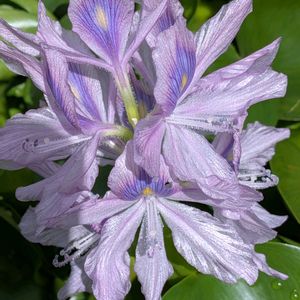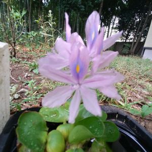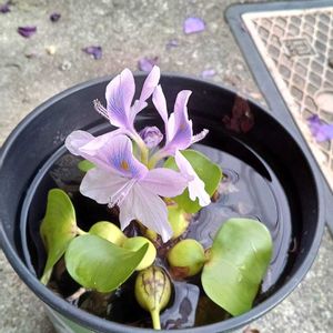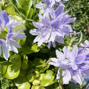 布袋草が涼しげに咲いてます。 透かし加減のある花弁がステキ✨ 気温は30度超えてます。
