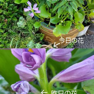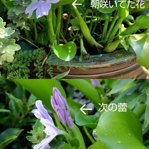 夕方のパトロール 朝咲いてた同じ 茎から次の蕾ができていました ホテイソウ 1本の茎から2つの花が咲くなんてビックリポンです。ありえない突然変異😂