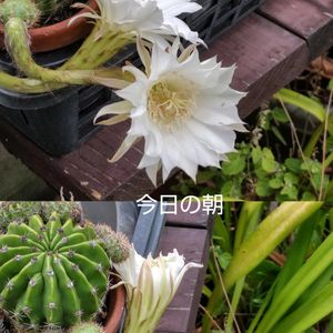 朝のパトロール ①②やはり1日で終わったサボテンの花 ③昨日見つけておいたホテイ草のつぼみ朝咲いていました。 ④クルクマ 苞の中の花1日で終わっていました。