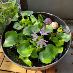 🌿増えすぎたホテイソウを、水盤に入れていたら、一輪今朝咲きました~🎵 只今、鉢の間に避難中です。😉