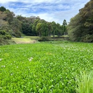 7月中旬にピークを迎え、暑さを理由にこの貯水池方面の散歩は敬遠。久しぶりに近くを歩き、もう枯れ始めてるだろうなぁと横目で見てビックリ。まだ青々していて花まで咲いてた〜。