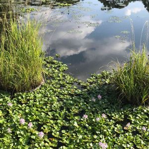 朝からの雨が上がり、少しお散歩。 久しぶりの公園の池には まだホテイソウが咲いていました。