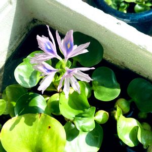 玄関先の金魚鉢のホテイソウ開花💜 なんて美しいの💜💜💜💜💜💜😘😍🥰