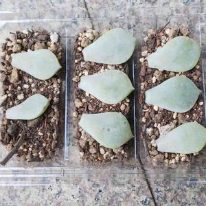 白牡丹の葉挿しっ子たち( ´艸`) あれ1つだけ違う子が混じってる( ´艸`)