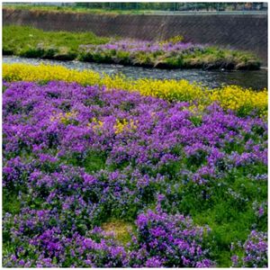 ヒメシャラの周り。グランドカバーが鮮やで元気もらえる〜😆周りに咲いてる花大根は毎年勝手に生えてきます。