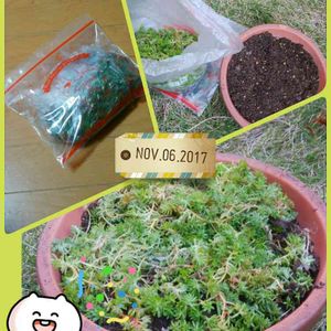 多肉愛を広めていたら、知り合いから、セダムをご近所さんからもらったんだけど、いる?って嬉しいお言葉💕 いる!いる! そして、届いた袋………あら?大丈夫かな(;^_^A いっぱい増えて困るから~、ポイっと土にのせて置くだけでOKだからーと言われたそうで…。 蒸れるよねー袋💦 さっそく、植えなきゃ~ε=ε=(ノ≧∇≦)ノ っと言うより乗せる、置く! これで大丈夫なんでしょうか? このお気楽さがいいのかな~ヾ(≧∇≦) 元気にな~れ*♪♬ セダム丼に成長してくれる事を願って…🍀 こうご期待下さい💞