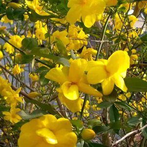 おはようございます💛 オウバイの近縁種で、別名ウンナンオウバイです😔 毎年大胆にカットしていますが、強い植物で今年も垂れた枝にたくさんの黄色い可愛いお花を咲かせてくれています😍