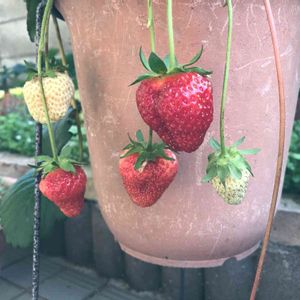 あまおう こちらのイチゴも実がなりました❣️ 買ってきた果物のイチゴ、種を取り出し実がなるよ、という話を聞き、半信半疑、種から育ててみました。 芽が出て、花が咲いて、そして大きな実をつけてくれました。