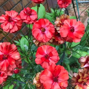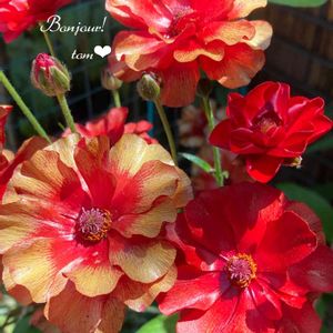 ラックス ハデス❤️🔥 真っ赤か❣️ 咲き進むとオレンジ色ぽい🧡 黄金いろ〜❤️🧡 小さなツボミもそれなりに真っ赤か❤️ 真っ赤な時はサテンのドレス👗を着た プリンセス👸 テカテカ❣️ 黄金いろに変化した時は打ち掛け👘を着た 姫さま👸 ピカピカ🌟 ちょっと上から、ビオラ💜や草花🌸を 家来に…。 ご機嫌よぉ〜🤗