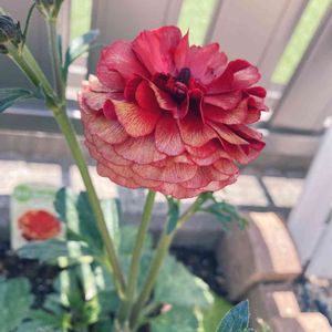 こんにちは😊 ラナンキュラスラックス 2年目のハデスが咲きました💖 ちょっと渋赤で大人な感じもいいわね🤣