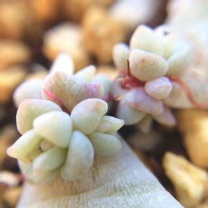この植物の名前をご存知の方教えて下さい m(_ _)m 左下は、株分けした時に残った根の塊を土に挿していたら、可愛い赤ちゃんが出て来ました!隣は接写の赤ちゃんです😊