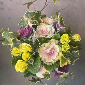 シエルブリエの寄せ植え お野菜みたいな葉牡丹は、 K-plantsさんの寄せ植え葉牡丹アラカルト プチブーケ 銀白の茎のプラチーナ シエルブリエは神秘の色!で咲いてます。
