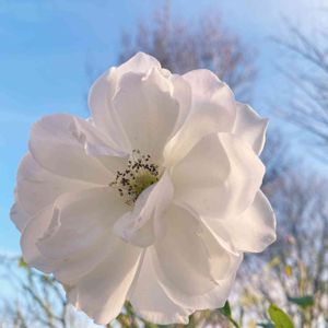 バラ アイスバーグෆ̈ 朝晩すご〜く寒くなったのに 最後に咲いていました びっくりです❣️ 偉いね〜💕 寒がりな私です 冷えるとつらいので レックウォーマーや ウエストウォーマー(腹巻き) * おしゃれな言い方ね 着けてます😂💓