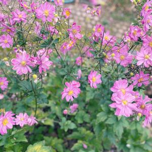 今日のお花 シュウメイギク(秋明菊) 🌸🌸🌸🍀 お庭の最後を彩って 悲しみを慰めて 元気をもらいました˖✧︎✧︎˖ ありがとう〜(*´∀︎`*)