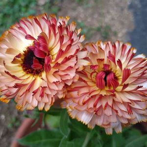 種から育てたカレンデュラ Johnsons Seedsの Calendula Sunset Buff 昨年秋まきで、今年2月頭からたくさん咲いてます^^