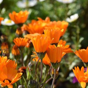 ✨キンセンカ✨(金盞花) 母の花壇にて♪ ストックと共に〜ෆ̈ 別名:「カレンデュラ」「ポットマリーゴールド」 花言葉:「別れの悲しみ」「忍ぶ恋」 ギリシャ神話に由来します 追記 悲しい花言葉〜 ギリシャ神話より〜 水の精クリティは太陽神アポロンに 恋心を抱いて…中略 … 思いは報われず嫉妬に駆られて 行った自分の行為を悔やんで 9日間アポロンを見渡せる場所で 座っていました…すると…そのまま キンセンカになってしまいました いつまでも太陽を見ていられるように… キンセンカは 太陽が出てる時に花を咲かして 沈むと花がしぼむという まるで 太陽の動きに呼応する様なお花なんですね*◌︎⑅︎‧✩͓̊︎