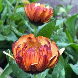 カレンデュラ🧡 秋に作った寄せ植えを整理してたら、お友達がプレゼントしてくれました。 花びらの裏の線描き模様がホントに可愛い🥰 雨に濡れてちょっと寒そう☔ 🏷金曜日の蕾たちに参加させて下さい💕
