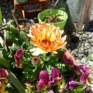 先日のお友達にいただいたカレンデュラ🧡咲きました☺️ ビオラは、切り戻して復活してくれました😊 カレンデュラは、やっぱり花びらの線描き模様が可愛い♡