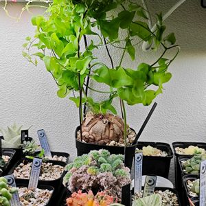 ペラルゴニウム トリステ 南アフリカ原産の多年草。 ゴツゴツとした塊根と繊細な葉が好きですね😊 葉が枯れて来たので休眠に入るのかなと思われます、休眠に入るとは分かりつつも少し心配になりますよね😮💨