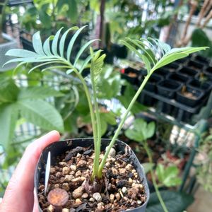 ①蘇鉄なのにこのサイズ感が可愛い♥️成長超おそ😄 サイズわかるように手も一緒に😅 サイカスタイシルバー(2023.01.08播種) ②植え替えて数日、古い葉のカットあるなしで変わらず一斉にお目覚め! ベラルゴニウムアッペンディクラツム(2023.12.01播種)