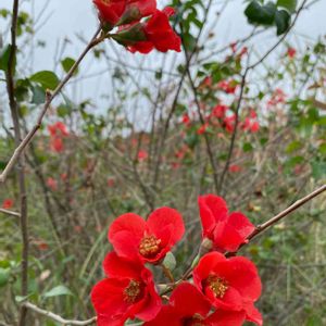福島市お花見山 赤い木瓜が沢山咲いてます🥰