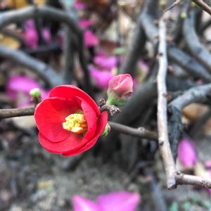 今日のお花は木瓜のようですね。 撮りにくい赤い花です🏵️💦