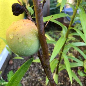 ボケの実が大きくなりました。食べられるのでしょうか?2個ありましたが、上のは枯れてます😭下のは5cmぐらいのボールになりました。
